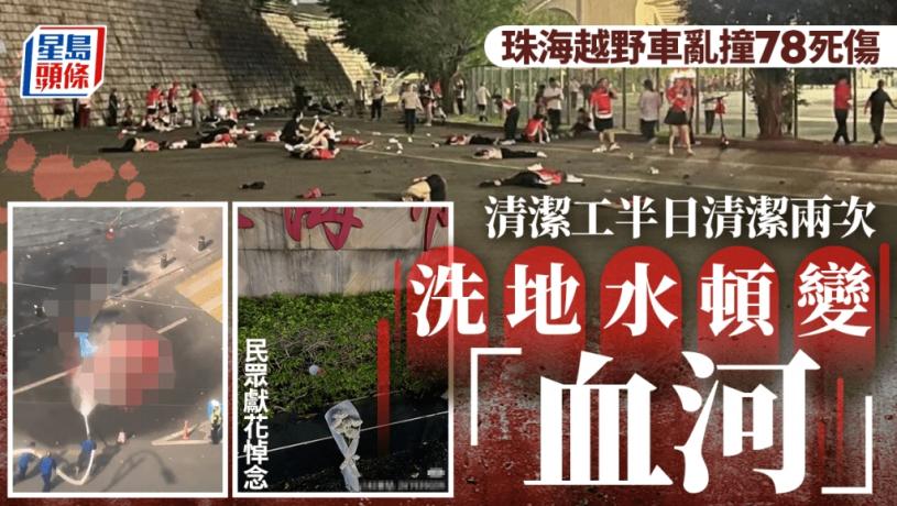 另有疑似珠海的網民在小紅書發帖,並附上一張事發地珠海體育中心的照片,其寫道「今日上午已經洗了兩遍」。其他網民隨時留言,包括:「這樣一甪車在裡面暢通無阻人都沒地方躲」、「滿地都是血!沖的水都是紅色的!很恐怖」。慘劇發生後,有民眾到事發現場獻上白花,悼念死者。