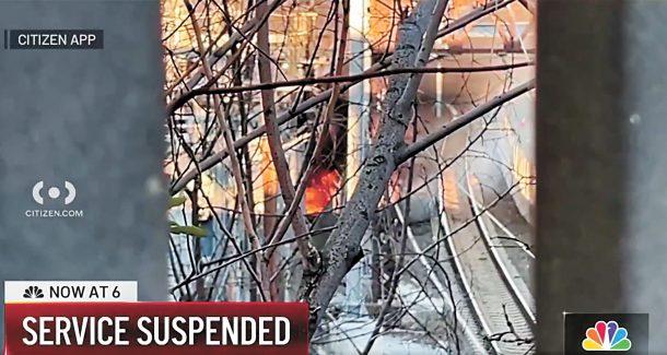 布朗士變電站起火,導致美鐵列車服務暫停。NBC新聞截圖