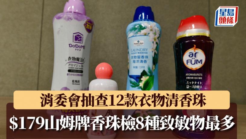 【消委會/衣物清香珠】消委會今日(15日)發表《選擇》月刊,抽驗市面上12款衣物清香珠樣本結果,全部均檢出不同種類和濃度的香料致敏物質,其中Member’s Mark by Sam’s Club品牌更檢出共8種,另外,DoDoMe及紡優美等四個品牌檢出不易被生物降解的人造麝香化合物佳樂麝香,長遠或對海洋生態造成影響。