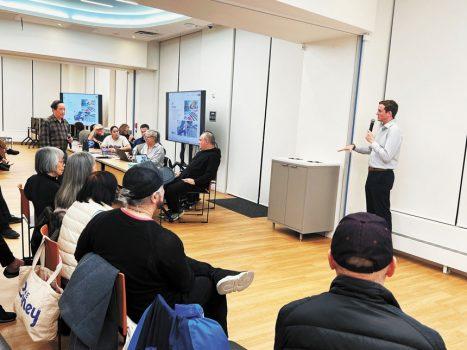 市交通局官員高惠利(Casey Gorrell)在第三社區委員會講述「通達華埠」的進展。