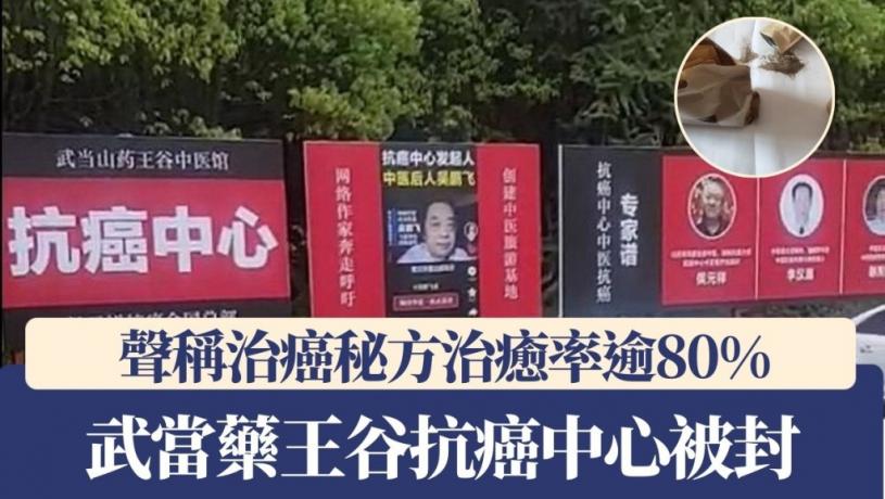 湖北十堰市武當山藥王谷中醫館,聲稱有治癌秘方能醫百癌,藥費連診金每月近1.7萬人民幣。有患者家人透露,就診患者中已有15人去世,20人病情加劇,質疑該中心虛假宣傳。當地衛建局指,藥王谷部份人員無資質、涉及虛假宣傳,已被下令停業,遭立案偵查刑事犯罪。