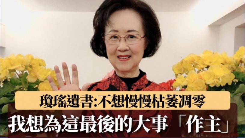 相關新聞︰瓊瑤逝世|一生支持安樂死 曾爭取丈夫「不插喉」與繼子女鬧翻