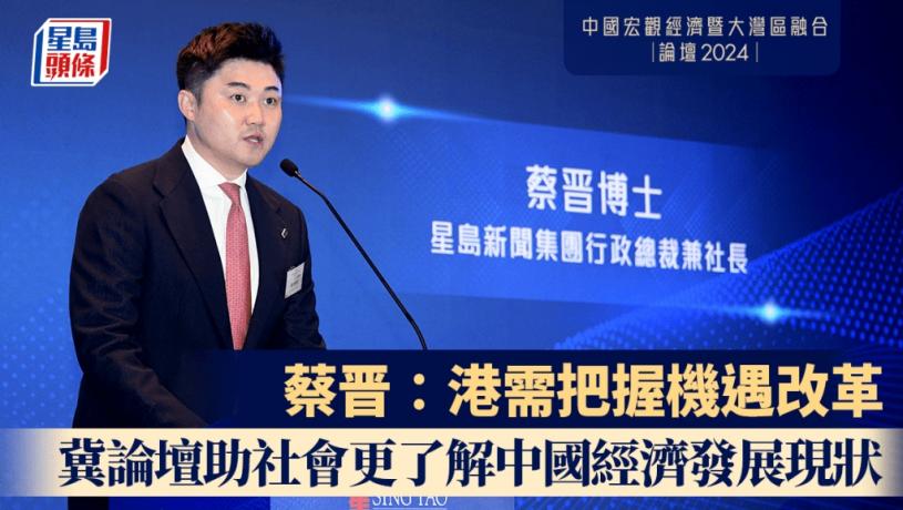 星島新聞集團主辦「中國宏觀經濟暨大灣區融合論壇2024」今日(6日)早上9時開幕。星島新聞集團行政總裁兼社長蔡晋在致辭時表示,香港作為大灣區最國際化城市,面對不斷變化的內外部環境,更需要把握機遇,銳意改革。他指,期望藉是次論壇,助香港社會更全面了解中國經演發展現狀及全球經濟走向,共同以創新前瞻思維謀劃部署。
