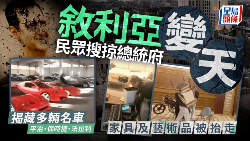 敘利亞叛軍周日宣布已進入首都大馬士革,總統巴沙爾政權已經結束。巴沙爾隨後放棄總統職位,並登上飛機離開,據報已前往莫斯科獲俄羅斯庇護。有民眾闖入總統府內,並發現多輛名車;亦有人趁機將藝術品及傢具抬走。