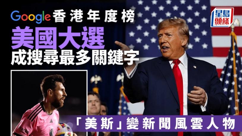 Google香港2024年度搜尋榜今日(10日)出爐!其中搜尋量飆升得最高的關鍵字,頭三位依次為「美國大選」、香港電影「九龍城寨之圍城」及足球盛事「歐國盃」。同時,今年熱搜用語意思第一位為「SLDPK」,意思是5個中文字「笑X到X街」的英文讀音縮寫,排第二位的則是「打羽毛球」及「APT」。