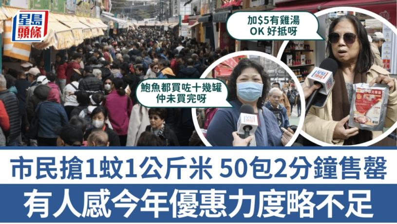市民陳小姐表示,購買了罐頭鮑魚、海味、零食等商品,合共超過1,000元,續稱「鮑魚都買咗十幾罐,仲未買完呀,買啲嘢準備過年」,預計花費逾3,000元。