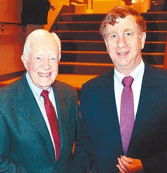 阿爾福德教授(右)同卡特總統合影。檔案圖片