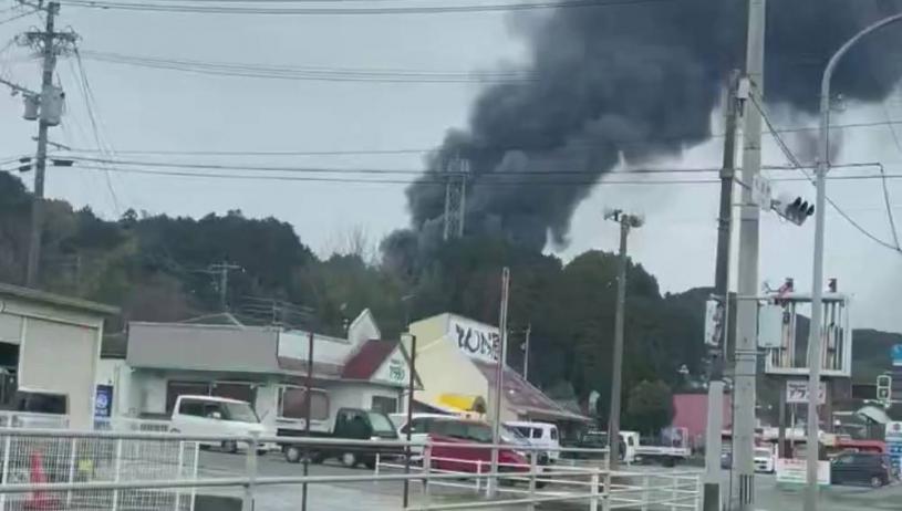 日本福岡縣飯塚市一間公司發生氣體爆炸,遠處可以濃煙衝天。 X平台