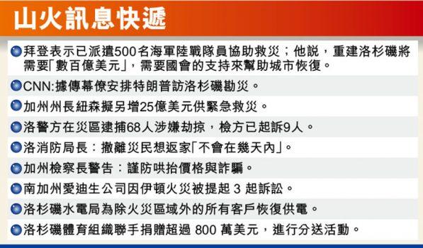 前來捐獻物資的華裔市民Bennie說,現在火災附近的超市已經買不到水了,她是專門驅車去另一個城市的超市去買水,然後再送去疏散中心。此外,她也去帕薩迪納社區學院PCC的疏散中心做義工,她希望更多的熱心華人朋友可以加入志願者隊伍。