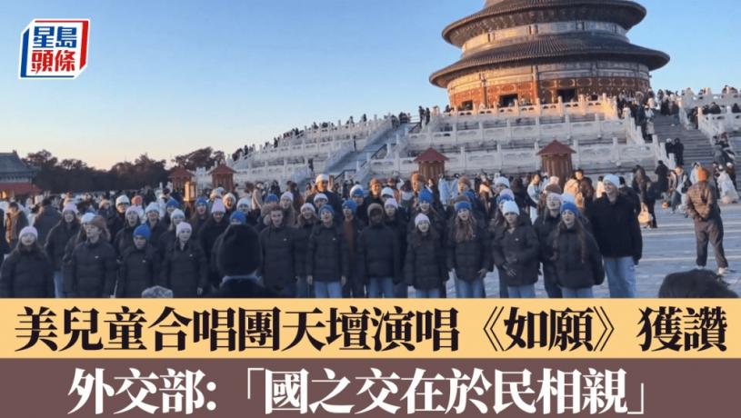 美國兒童合唱團One Voice近日在北京天壇演唱中文歌曲《如願》,相關影片在網上瘋傳,廣獲中國網民好評。周三(15日),外交部發言人郭嘉昆表示,這段影片廣為傳播、深受好評,再次顯示加強中美人文交流是得人心、順民意的。