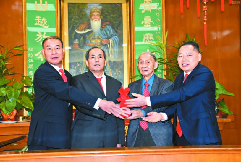 (▍僑社記者馬紅兵報導 ▍ )1月5日中午12時,伍胥山總公所在禮堂舉行2025年度職員交接典禮。監交人璇燦總顧問、滿任主席景熾;新任主席熾明、副主席保抗;元老柱鈞、元贊、璇振;美西總長柱偉暨顧問、職員、宗親出席觀禮。正午時分,眾人齊聚禮堂,虔誠向子胥公和福堂翁神像行三鞠躬禮,行禮如儀。新任主席熾明恭讀祝文,中文書記振城主持交接典禮。總顧問璇燦主持監交,新任主席熾明、副主席保抗從滿任主席景熾手中接過印信,履新視事。總顧問璇燦主持監誓,新屆職員宣誓就職。