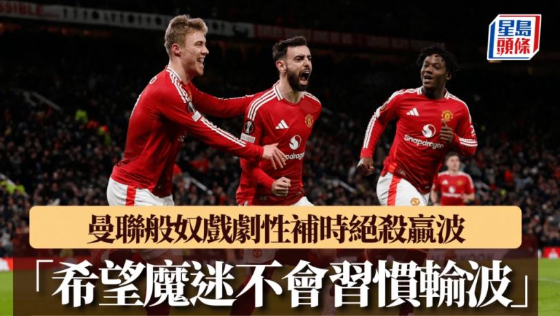 周四歐霸第7輪賽事,曼聯先開紀錄,但於完場前失波被追平,幸隊長般奴費南迪斯挺身而出補時建功,最終主場2:1贏格拉斯哥流浪,歐霸4連勝直接晉級在望。賽後,般奴直言真的十分渴望取勝,希望魔迷不會習慣輸波。