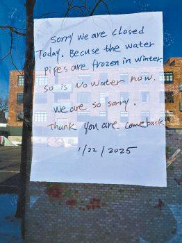 在唐人街就有餐館張貼出因水管爆裂,無法開門營業的告示。梁敏育攝