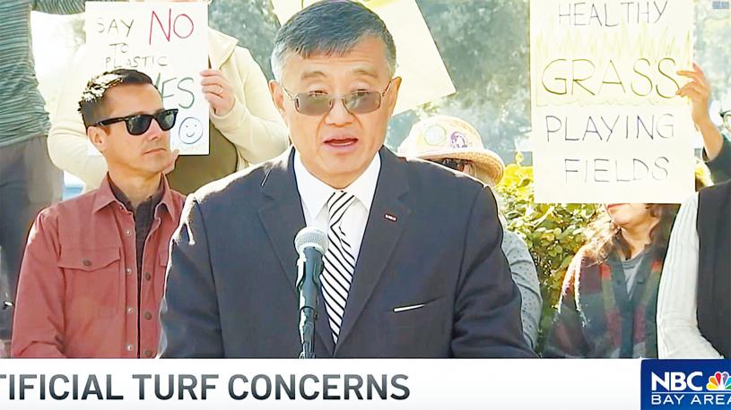 聖他克拉縣參事李洲曉(Otto Lee)以健康和環境隱憂為由提案,擬禁止縣屬公有地上鋪人工草皮,但引發爭議,縣參事會將於本月28日審議禁令。