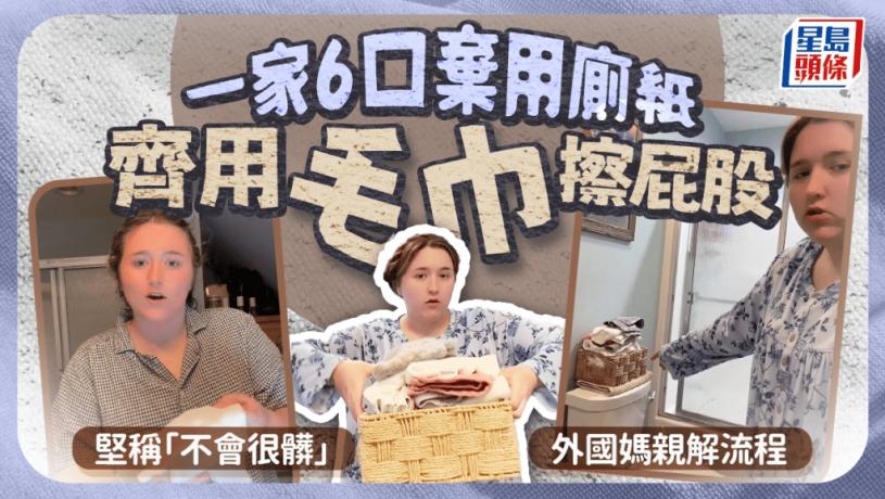 一名外國女子在TikTok上分享獨特生活習慣嚇親網友,她上廁所放棄用傳統的廁紙擦屁股,改用毛巾替代,且全家6口齊用。網友強烈批評衛生令人擔憂,但她堅稱這與沐浴後用毛巾擦身體差不多,「其實不會很髒」。