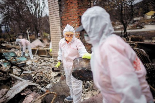 撒瑪利亞救援會志工在阿爾塔迪納災區搜尋伊頓大火中倖存的物品。美聯社