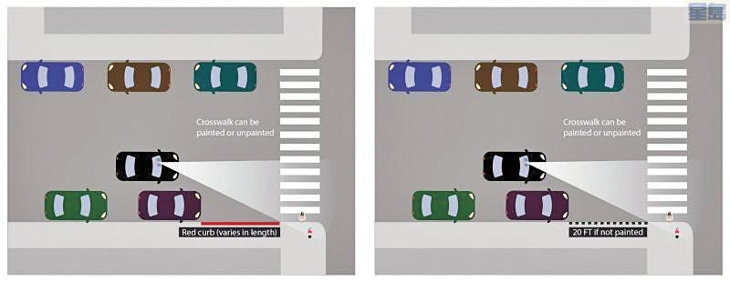 根據《日光法》,禁止汽車與行人穿越道太近,避免妨礙其他車主看到穿越馬路的行人。