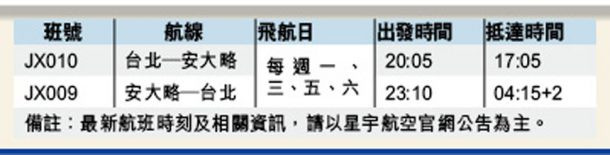 目前,星宇航空在北美的航點包括洛杉磯、三藩市、西雅圖,新增安大略航線將進一步鞏固星宇航空在北美市場的布局,讓旅客擁有更多出行選擇。星宇航空安大略—台北航線將由新世代Airbus A350客機執飛,機艙提供共306個座位,包含頭等艙4個、商務艙26個、豪華經濟艙36個,經濟艙240個,開航初期每週4班,詳細航班時刻表如下: