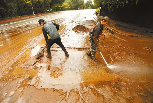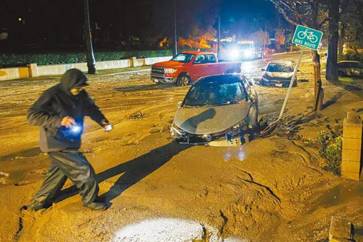 《洛杉磯時報》報道,周四晚,隨著風暴抵達,南加州出現街道洪水和土石流,太平洋海岸高速公路沿線損壞最為嚴重。阿爾塔迪納的伊頓火災燃燒區及荷里活山的穆赫蘭道和前哨大道均傳出土石流和山洪災情。