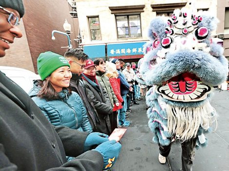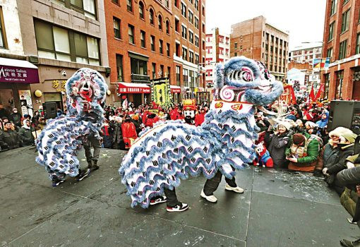 儘管冬季風暴在一夜之間為波士頓帶來超過5英吋的降雪,但近千唐人街居民和游客仍然勇敢地冒著泥濘的街道和寒冷的氣溫,並於9日(周日)上午前往唐人街觀看由紐英崙中華公所主板的一年一度的農曆新年舞獅遊行。