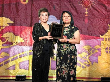 總幹事胡玲玲(右)頒發感謝匾予前任UNITY總幹事陳莎莎(左)。 梁敏育攝