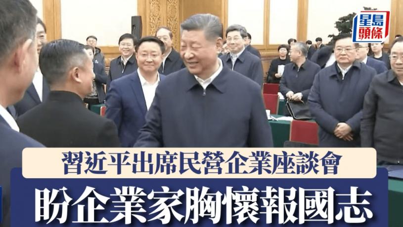 據央視畫面今早顯示,華為任正非、阿里巴巴(9988)馬雲、小米(1810)雷軍、比亞迪王傳福、寧德時代曾毓群、新希望集團劉永好、騰訊(0700)董事會主席兼首席執行官馬化騰等參加座談會,並在前排就坐。