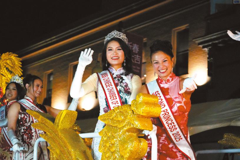 新出爐2025全美華埠小姐女皇肖美蘭向觀眾揮手致意。記者黃偉江攝