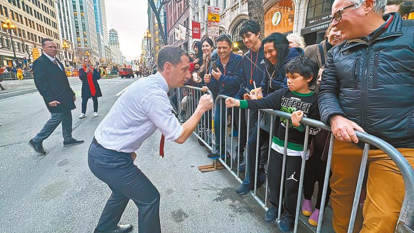 三藩市市長羅偉與小觀眾碰拳打招呼,盡顯親民本色。記者蘇婕雅攝