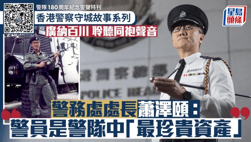 早前出版的《警聲》特刊訪問了警隊18個不同職級的人員,當中包括「新紮師兄」以至警隊最高層,其中警務處處長蕭澤頤透露年輕時加入警隊的原因,並評價目前警隊上下的表現。