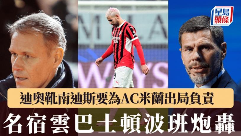 首回合作客輸0:1的AC米蘭,次回合返回主場成功控制戰局,半場已經領先1球本以為反勝晉級在望。沒料到後守迪奧靴南迪斯51分鐘「插水」博12碼,領到個人今仗第2面黃牌被逐離場,連累球隊餘下時間少打一人形勢被逆轉,最後更被逼和1:1,總成績輸1:2出局。難怪米蘭名宿賽後齊聲炮轟靴南迪斯,米蘭一代射手雲巴士頓直指:「看了靴南迪斯今場比賽,他簡直是頂級的蠢貨,而AC米蘭今仗整體的表現同樣很糟糕。」