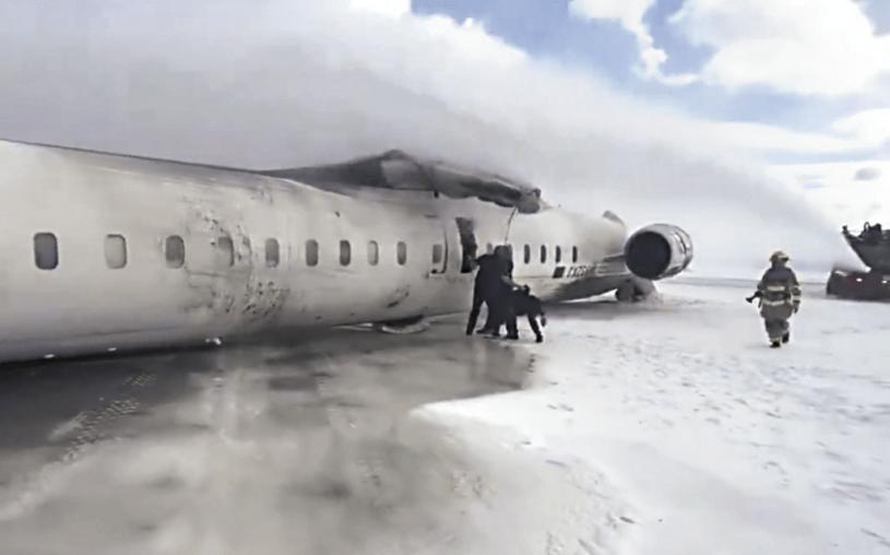 加拿大廣播公司報道指,出事客機有76名乘客及4名機員,由美國明尼阿波利斯出發,下午2時許飛抵多倫多。網上流傳的一段視頻顯示,事故發生時機場地面有積雪,客機機身在積雪的跑道上翻轉並冒煙,一邊機翼折斷,機尾部分斷裂,有乘客爬出機艙。另一段視頻可見空乘協助乘客撤離機艙,救援人員向機身射水降溫。
