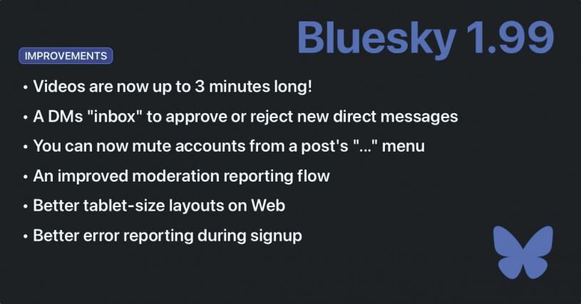 Bluesky繼續增強其視頻功能,最新的更新將視頻上傳時間上限從原本的1分鐘延長至3分鐘,為內容創作者提供更多的發揮空間。