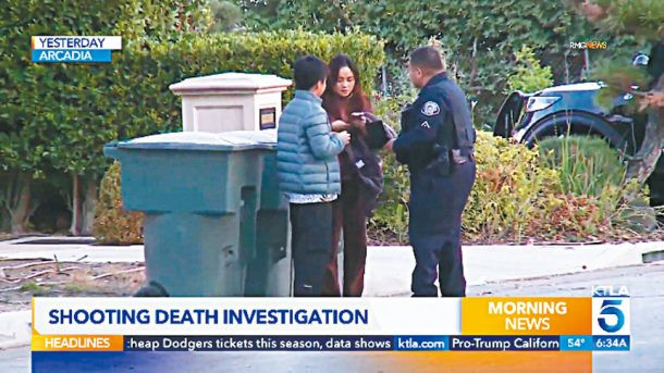 亞凱迪亞豪宅發生命案,警方在案發現場調查。KTLA截圖