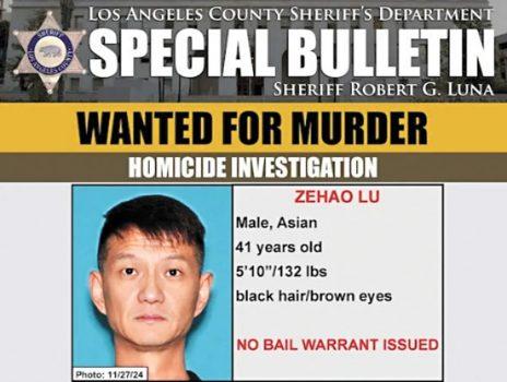 洛縣警局19日宣佈,亞凱迪亞市兇殺案的嫌疑人為41歲中國籍男子盧澤豪(Zehao Lu,音譯),他被認為「持有武器且極度危險,據信已逃往中國。」警方表示,嫌犯與受害人相識,並呼籲公眾提供線索,確保嫌疑人被繩之以法。