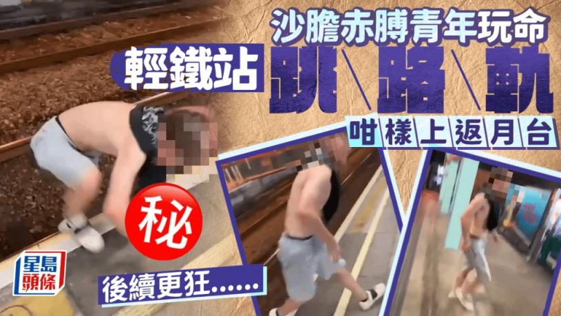 沙膽赤膊青年玩命輕鐵站跳路軌逐張睇 ↓↓↓↓
