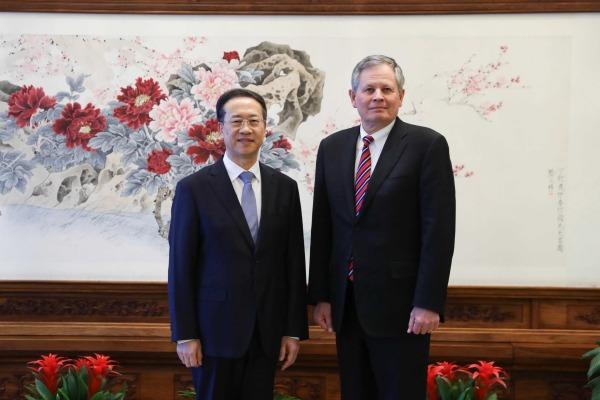 中美貿易戰重燃之際,美國總統特朗普的親密盟友、共和黨參議員戴安斯(Steve Daines)訪問北京,今日與中國外交部副部長馬朝旭會面,就中美關係等問題交換意見,成為特朗普重返白宮後訪華的最高級美國政界人士。被問此行是否為中美元首會面鋪路,中國外交部發言人毛寧說,歡迎戴安斯參議員訪華,中方一貫認為中美關係保持穩定,符合兩國人民的共同利益。