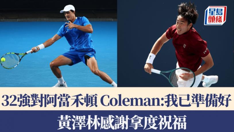 香港網球一哥黃澤林(Coleman)周日凌晨在邁亞密公開賽次圈,爆冷淘汰東道主球手、世界排名14的舒爾頓(Ben Shelton),一夜爆紅,包括他過去3年多在拿度網球學校訓練的「校長」拿度在內都送上祝福,對於首闖這項ATP1000級別的32強將對世界排名89的澳洲阿當禾頓(Adam Walton),Coleman表示:「我已準備好了!」