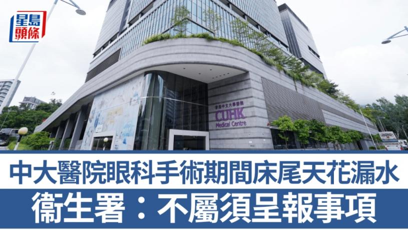 【中大醫院/手術室/天花/漏水】有報道指香港中大醫院一間手術室早前在手術進行期間天花漏水,衞生署今日(23日)回覆查詢時表示,據悉該醫院在3月10日為一名病人進行眼科手術,手術即將結束時,手術床尾部的天花板開始漏水。