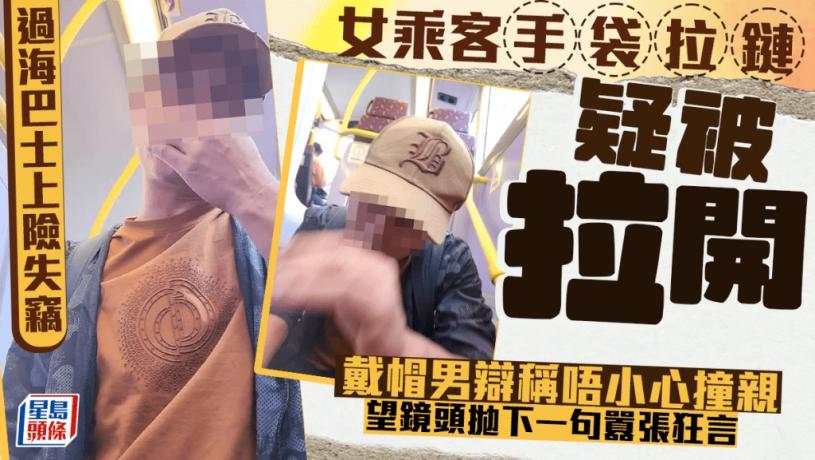 一名乘搭過海巴士的女乘客,早前在車上懷疑遇上扒手,見到對方「搵件衫遮住」,疑似「伸隻手過嚟撩我個手袋拉鏈」,於是在車上大嗌,並舉起手機拍攝對方。戴鴨舌帽的男子反駁指控,並在鏡頭前囂張地拋下一句狂言。有網民則似乎認得該名戴帽男,爆料指曾在柴灣目擊對方疑似正在犯案。