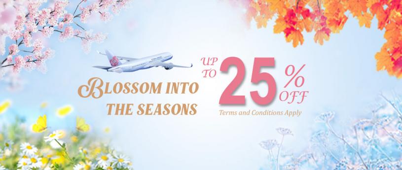 本次促銷特別為下半年開啟超值優惠,從賞春、乘夏、迎秋到戀冬,一年四季任你悠遊!詳情請洽華航官網( www.china-airlines.com ) 、華航Facebook/Instagram粉絲專頁或各大旅行社。