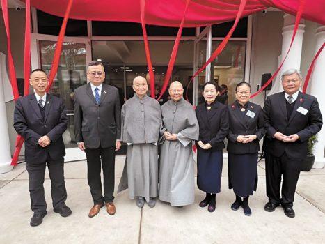 類延峰處長(左二)在開幕日與慈濟德悅師父、德瑋師父、黃思浩師兄,慈濟全球總督導黃思賢師兄,美國慈濟總會李瓊熏執行長及芝加哥慈濟基金會謝執長和副執行長雅美師姐合影。 芝加哥慈濟基金會提供