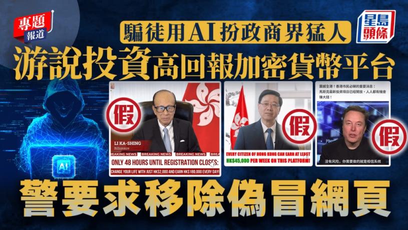 近日網上流傳政商界猛人介紹AI自動化投資加密貨幣平台的影片,當中行政長官李家超、財政司司長陳茂波、香港首富李嘉誠、世界首富馬斯克均以英語呼籲香港人盡快投資,以賺取大額回報。《星島》記者聯絡「投資顧問」,對方連番游說支付約2000港元投資,更以「時間就是金錢」作出訓斥,強調延遲投資便少賺很多。知情人士透露,騙徒哄騙受害人投資後,會在虛假投資平台顯示投資獲取暴利,再游說增加投資,以賺取更高回報,惟受害人難以取回「利潤」和本金,最終血本無歸。