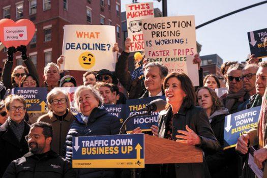 胡楚將不理會聯邦原先下令4月20日的擁堵費結束限期。 Adam Gray/紐約時報