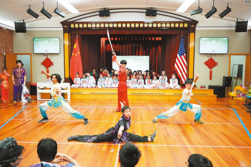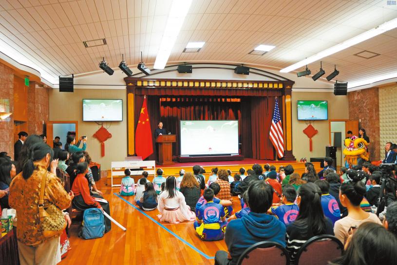 為慶祝「國際中文日」,中國駐舊金山總領事館昨日下午在總領館舉辦「中文:穿越時空的禮物」開放日活動,包括文藝演出、書法體驗、互動遊戲等。各校區、中文學校的師生、家長約300人出席。