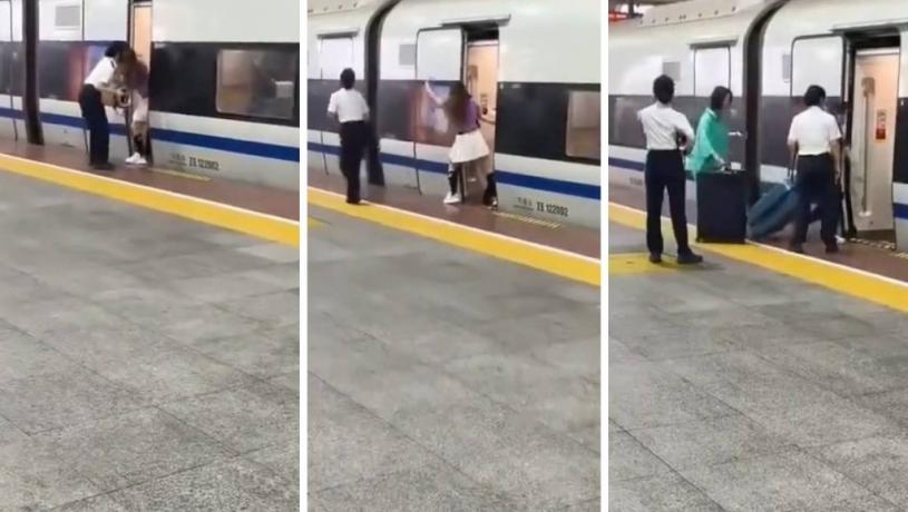 深圳鐵路公安處深圳北站派出所民警李林聲表示,事發於上周五(18日)下午1時許,由東莞南站開往廈門站的D2404次列車,停靠在深圳北站3站台準備發出。車門即將關閉時,車內一名女子因同行人還未上車,強行用身體阻擋車門。兩名鐵路工作人員見狀即上前制止。女子未有理會工作人員的勸阻,直到三名同行人趕到,才離開車門。