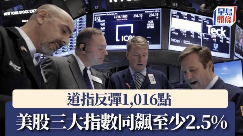 周二,美國股市出現反彈,三大指數全升超過2%,其中道指收市升1016點。報道指,企業財報強勁以及美國與中國貿易緊張局勢有望緩解,推動了投資者回歸市場。