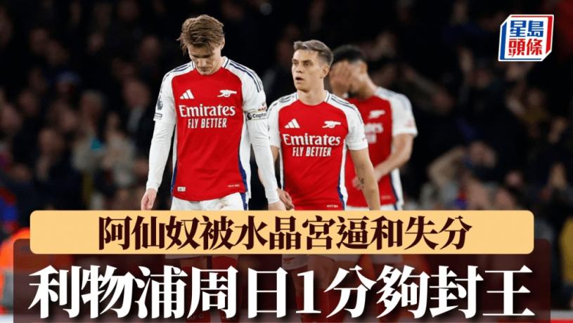周三英超獨腳戲,阿仙奴主場被水晶宮逼和2:2,槍手只得1分後造就榜首利物浦於周日英超主場對熱刺只要不敗即提早封王。