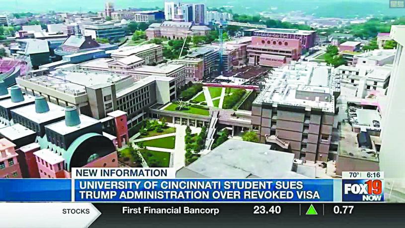 全美數以千計國際學生被政府撤銷簽證或合法身分後,多處法庭接連頒布臨時禁制令,暫時允許涉案學生留美,但長遠仍需視乎最終仲裁結果。在俄亥俄州辛辛那提,1名中國籍博士生加入訴訟行列,表示他來美超過10年,雖曾因家庭糾紛而被捕,但沒有定罪,這次依然被特朗普政府取消身分,導致學業、研究和私生活都受到影響。