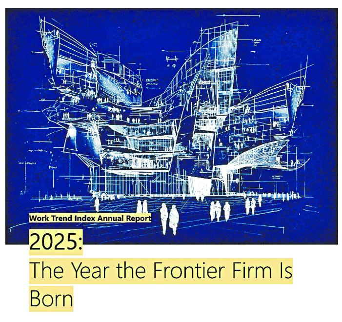 根據伴隨網誌公布的微軟《工作趨勢指數》(Work Trend Index)報告,這些前沿企業將「由人類與代理人組成的『混合』團隊驅動,按需求智能建構起來,規模將迅速擴大,靈活運作和更快創造價值」。微軟認為,未來兩至五年內,每家公司將朝這個方向邁進。