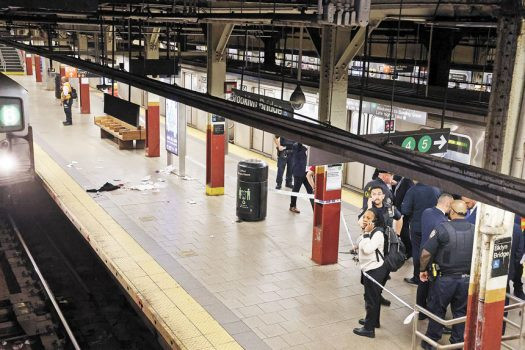 命案發生後,在布碌崙大橋-市政廳車站月台仍可見血跡。 Jefferson Siegel/紐約時報